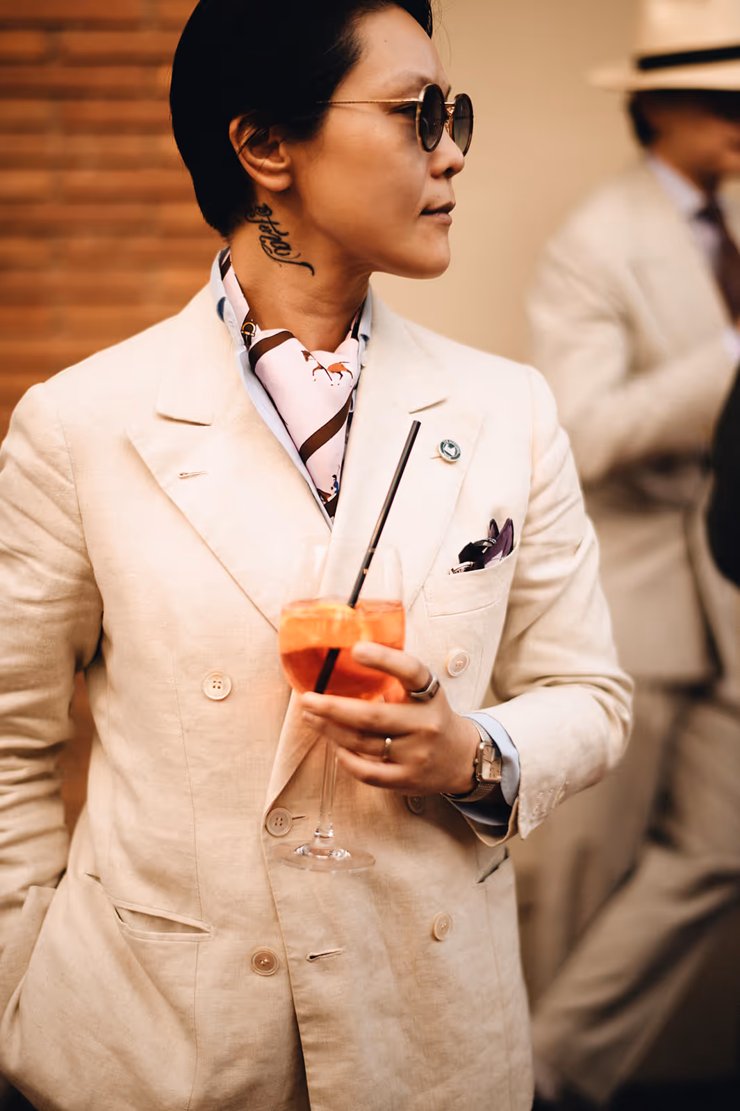 D’autres femmes se font entrepreneurs, et s’engagent résolument dans les milieux sartoriaux. C’est le cas de Dennise (@women_in_tailoring) présidente et co-fondatrice de The Sartorial Club, un des cercles importants de l’élégance internationale. Depuis janvier 2022, elle œuvre à la diffusion et à la mise en valeur du modèle d’élégance et d’art de vivre à la sartoriale. Les soirées “black tie” de son club font la part belle au smoking au féminin, et renouvellent le modèle classique des cercles de l’élégance en y admettant indifféremment acteurs et actrices, admiratrices et passionnés de l’art tailleur.